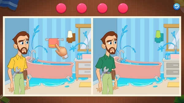 除了消除闯关类的小游戏体验外,获取星星还有另一种方式。这里采用了寻物找茬的玩法,通过对比两幅图片,找出其中的不同之处。画面上方的粉色圆形图标,显示的是图中不同点的总数。