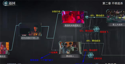 第一个QTE不滑动会提示错过关键剧情,不过我尝试了很长时间,也没弄明白这到底有什么影响。