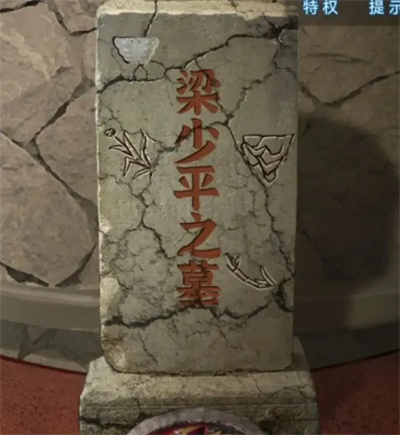 3、查看左下角的花丛,在左边未被烧毁的花丛里拿到一把纸伞;再点击右边被烧毁花朵上的白色蝴蝶,蝴蝶会变成一块蝴蝶形玉。把这块玉放入墓碑的凹槽中,墓碑就会显示为“梁少平之墓”,同时墓碑上还会出现三个图案。