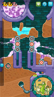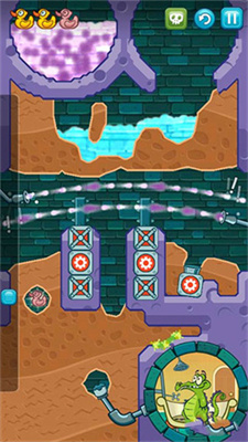 8、就这样持续引导水流,直到得到最后一只鸭子,然后将水流引到小鳄鱼那里就能顺利过关了。