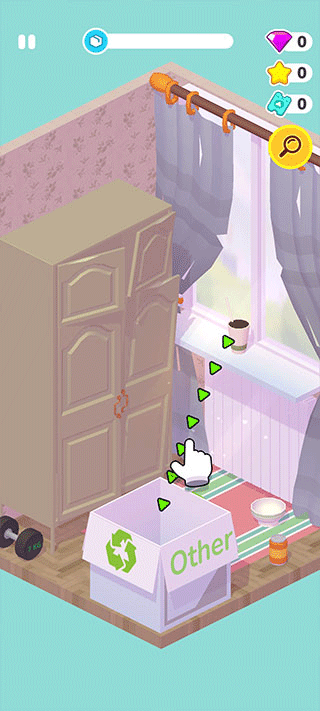 1、游戏开始后,玩家要把房间里的物品整理干净,装入箱子中收纳打包好。
