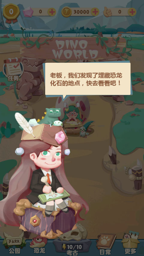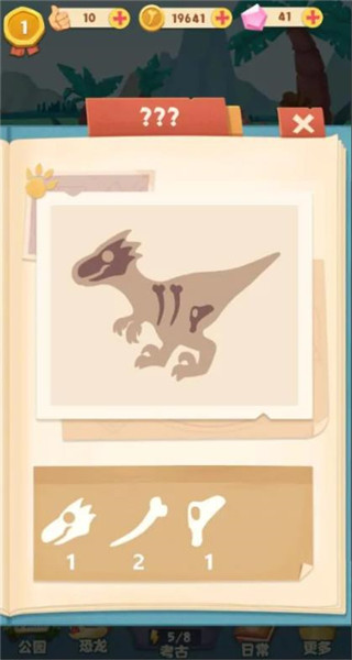 《全民养恐龙》是一款休闲风格的模拟经营游戏,玩家在游戏里不仅能邂逅那些已灭绝的恐龙,还能亲自饲养它们。游戏过程中,玩家需要通过考古挖掘来获取恐龙化石,一旦集齐某只恐龙所有部位的化石,就能解锁对应的恐龙。此外,两只相同的恐龙还可以合成出全新的恐龙种类。