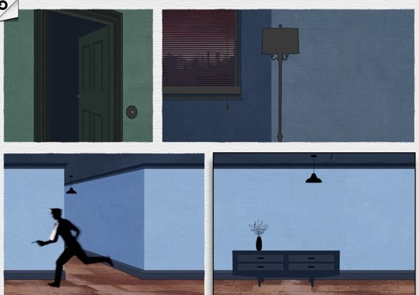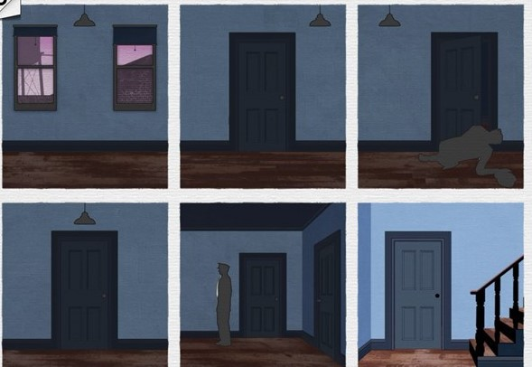 第三场景:拖动图片,帮助主人公避开警察,从楼梯处逃离。