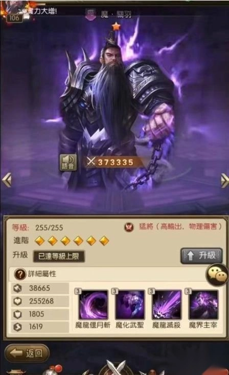3、第三个是魔关羽,输出能力相当出色,同时具备实用的功能性,如今物理阵容几乎都会带上他,其强度甚至超过不少付费武将,性价比极高。