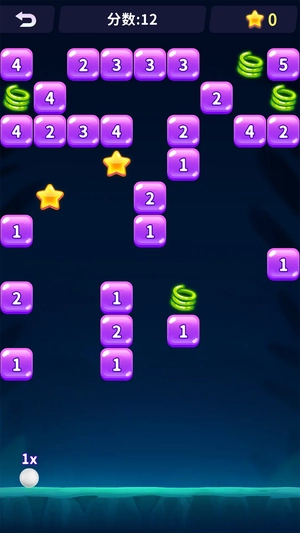 玩家可拖拽弹珠发射器来调整角度,松开手指即可发射弹珠击碎砖块。