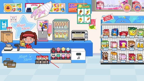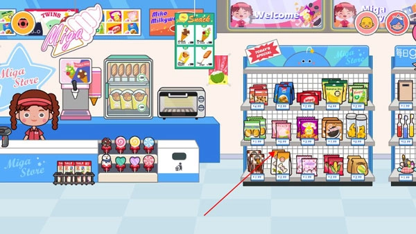 打开米加小镇游戏页面,然后点击进入超市。