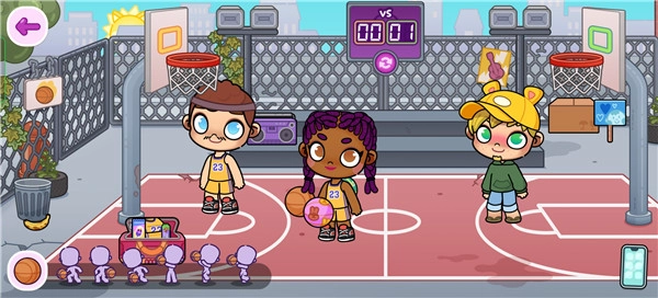 5、回到主页面后,可以切换至其他场景,例如让角色进行打篮球等各类运动