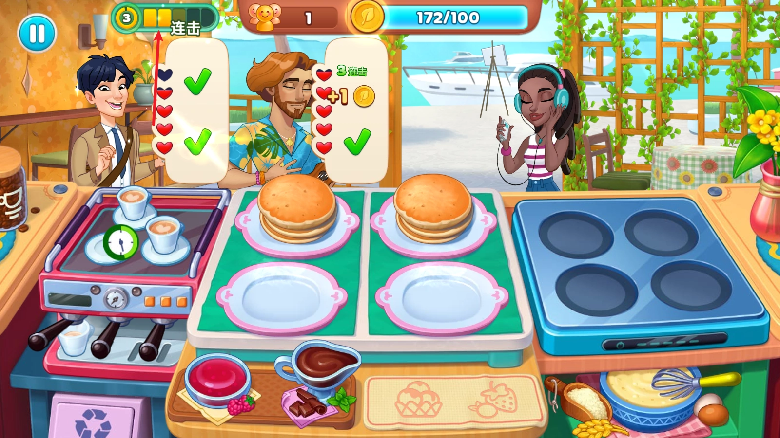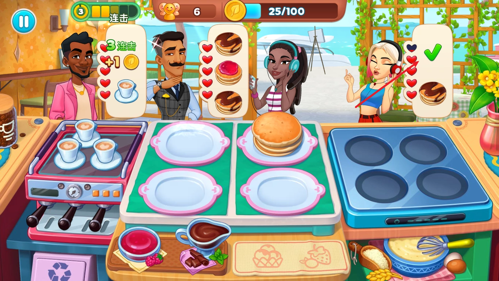 6、连续完成客人的订单,还会触发连击效果,从而获得更高的奖励。
