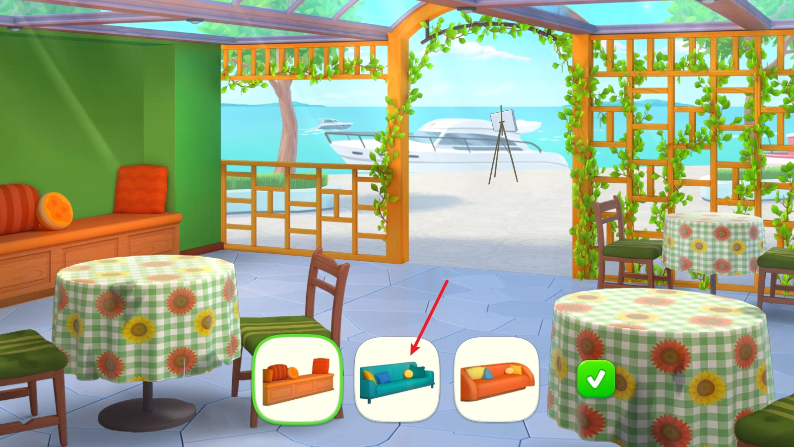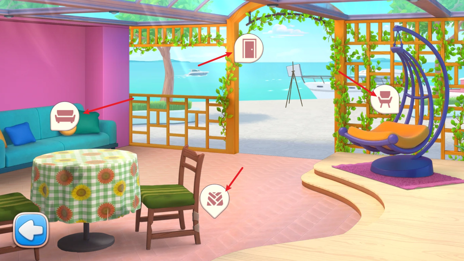 4、接着点击左下角的粉刷图标,进入页面后,就能更换现有物件的款式啦!
