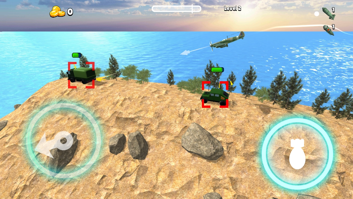 1、游戏玩法是操控你的飞机炸毁敌方运输车,其视角十分独特,能为玩家带来身临其境的游戏体验。
