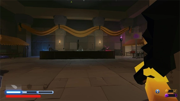 4、在地牢冒险的过程里,偶尔会碰到一些特殊怪物,它们大多是难度高于当前关卡的存在,比如在第一关就出现第三关的怪物。像体型巨大的金色矿石怪,击败它们后会掉落蓝币。蓝币的位置在金币之上,这些蓝币能够在职业室附近兑换特殊的永久升级道具。