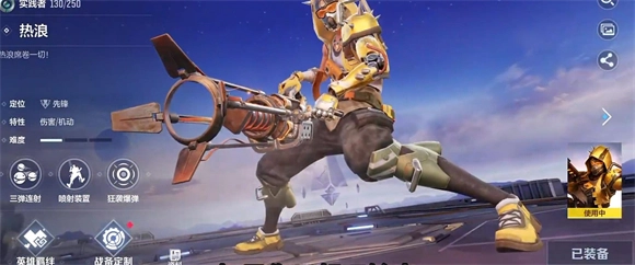 1、热浪是进入游戏即可获得的初始角色,定位为先锋,该角色技能伤害尚可,其二技能能让角色高高跃起并滞空一秒,借此可跨越墙体发动突袭,打敌人一个措手不及。