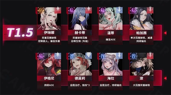 3、T1.5角色:伊琳娜、赫卡蒂、温蒂、帕加茜、伊格尼、德莫莉、海拉、澈