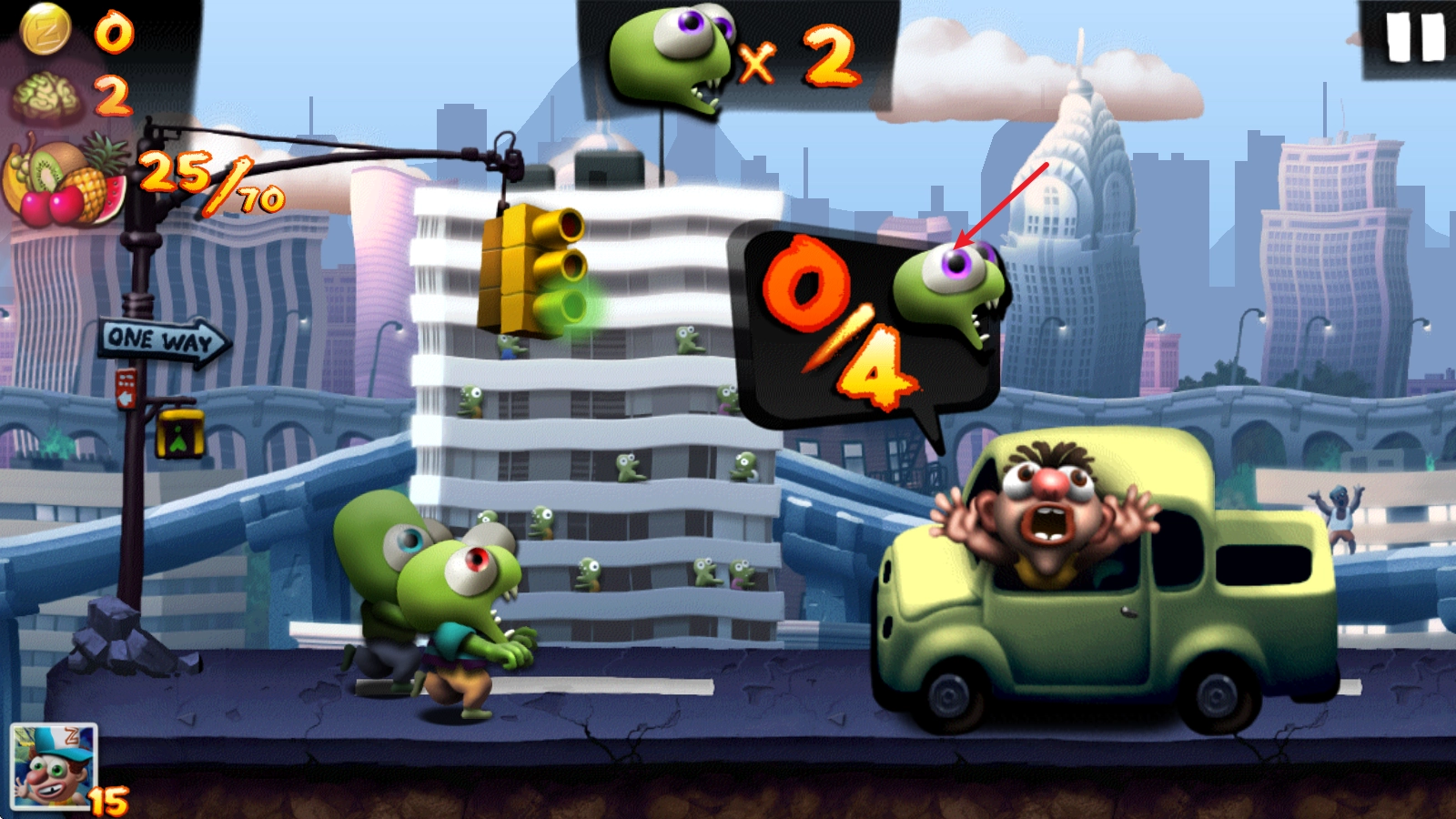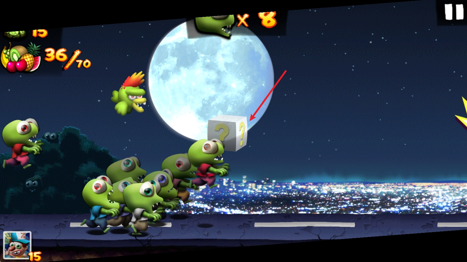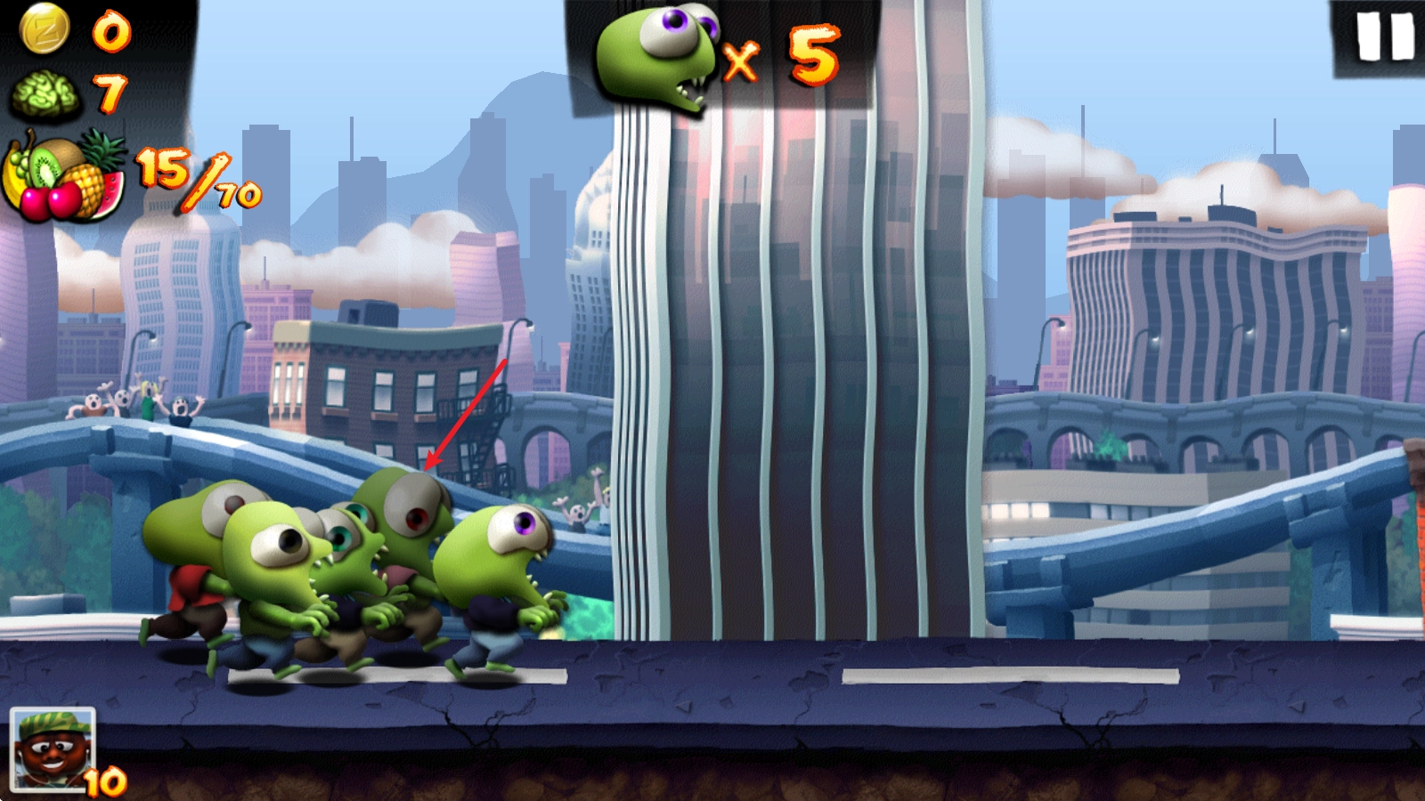 1、开启挑战后,僵尸会自动向前奔跑,点击屏幕即可让其跳跃。