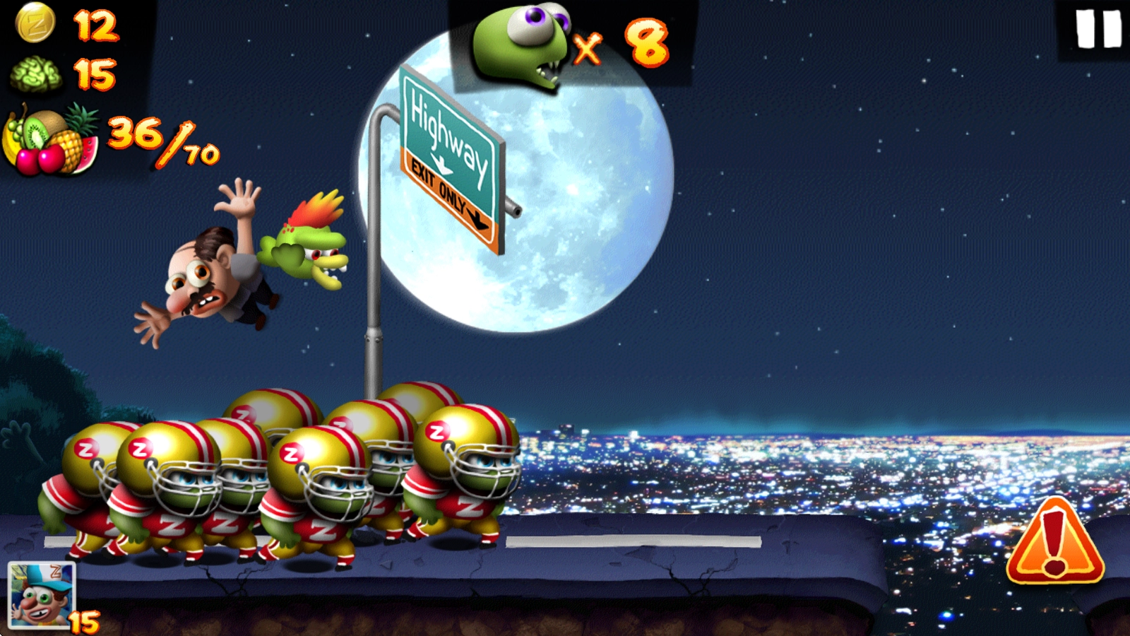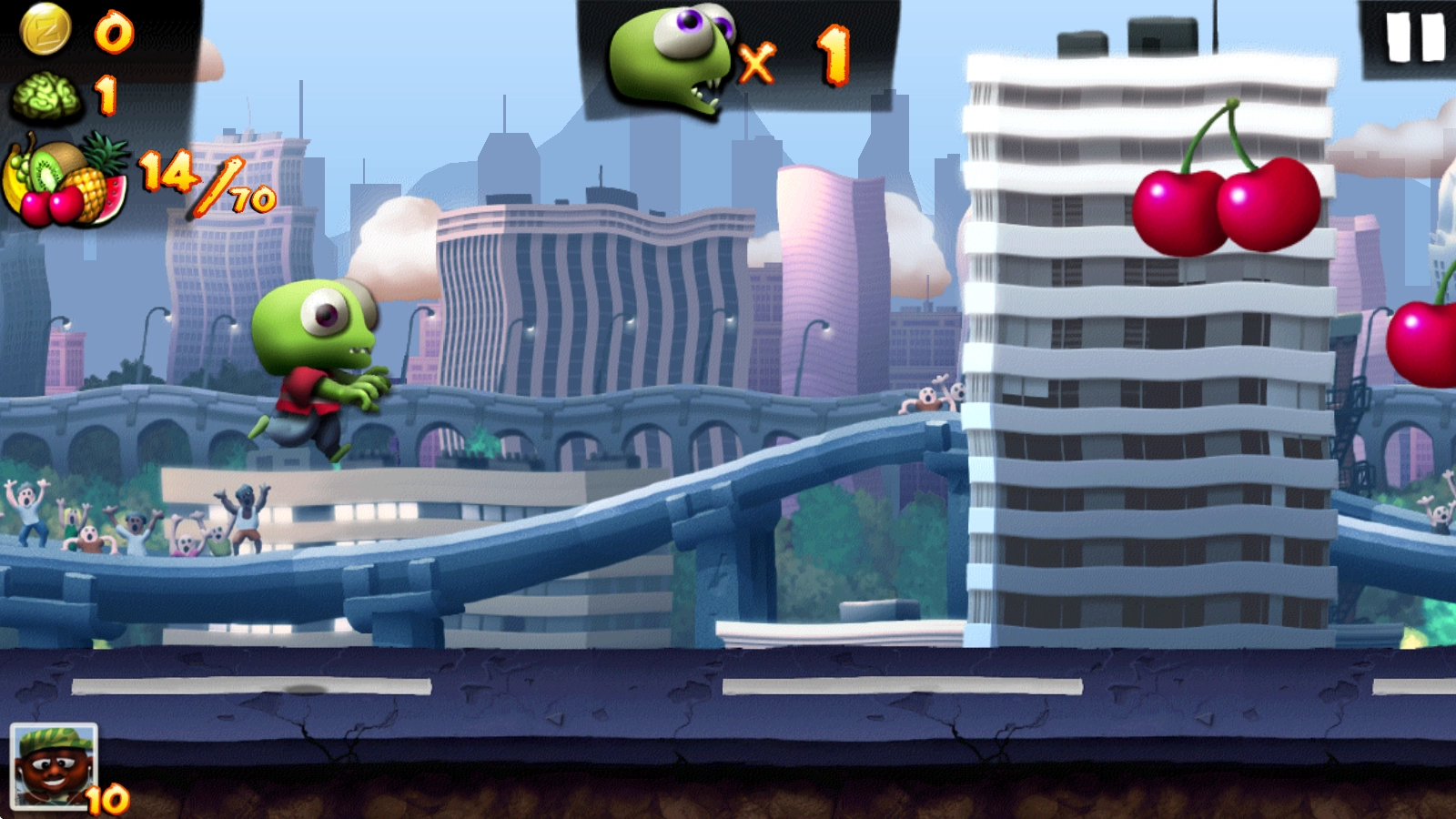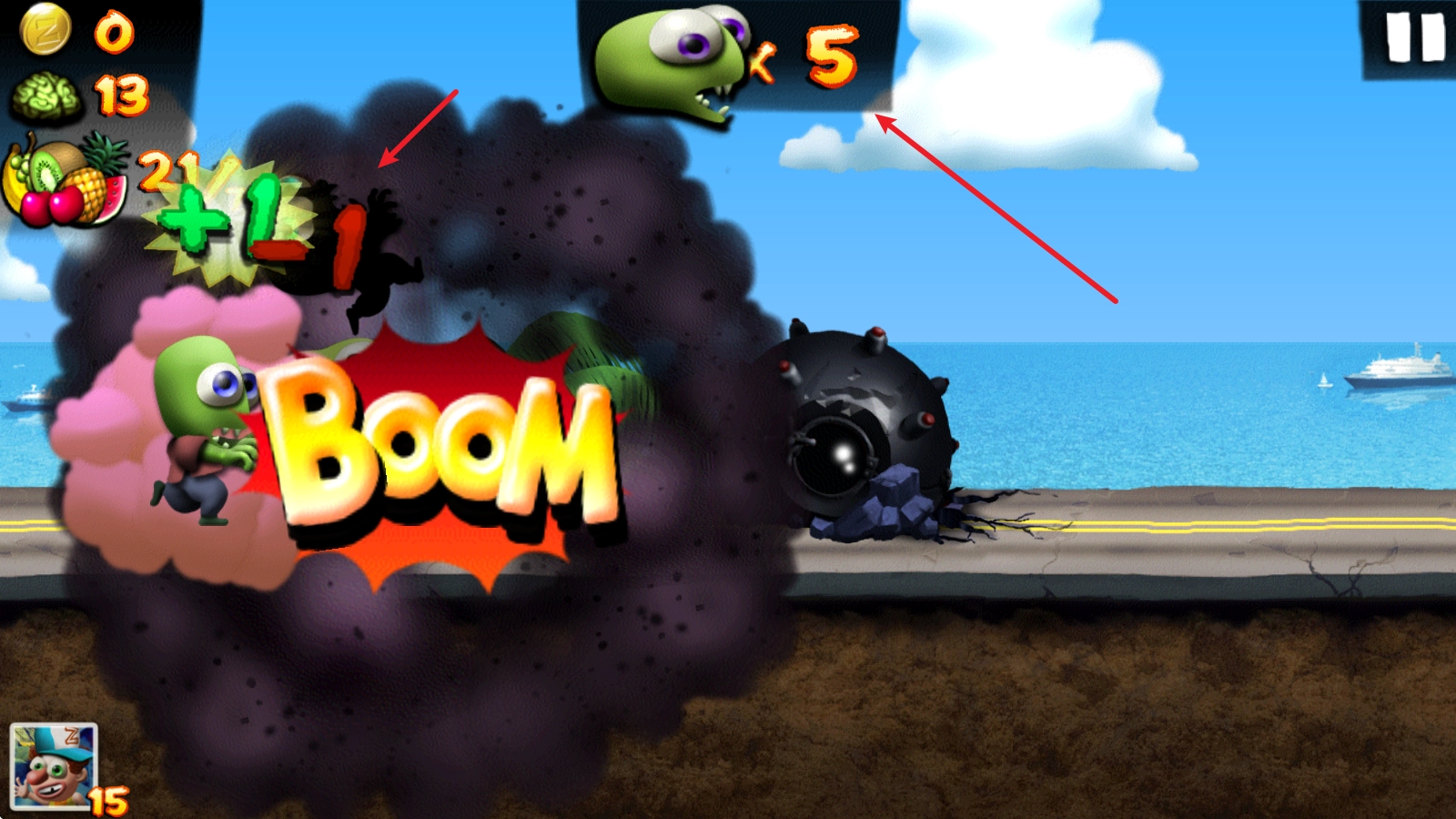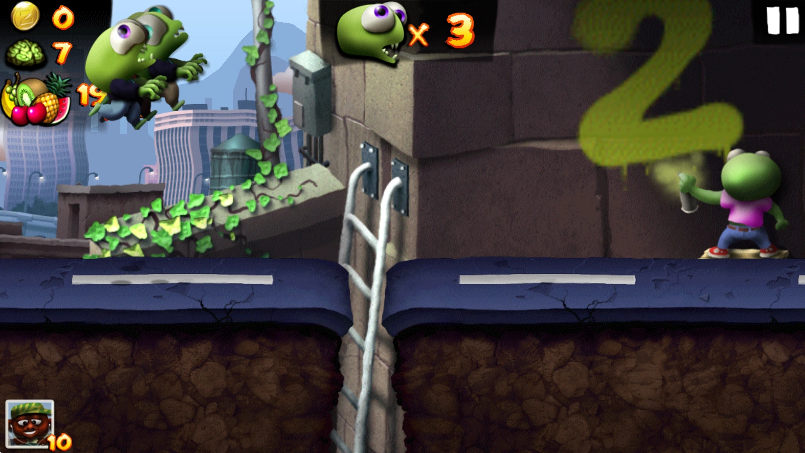 1、开启挑战后,僵尸会自动向前奔跑,点击屏幕即可让其跳跃。