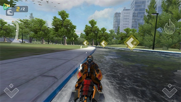 3、每张地图的场景都各不相同,驾驶快艇时需要持续调整方向,如此才能保持最高速度前进。