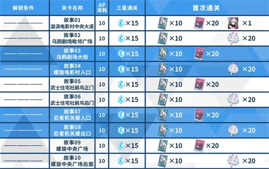 1、以下是任务关的掉落详情,完成所有任务关可获取360个青辉石,还能得到部分活动兑换道具。