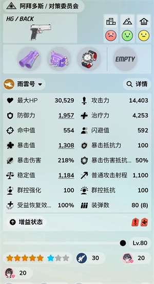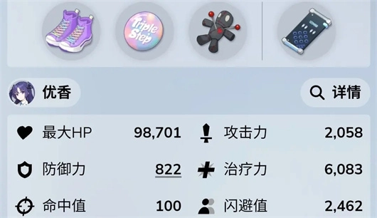优香的基础面板相当出色,闪避数值有1800,生命值超过9万,小技能的伤害表现也很亮眼。在装备T2爱用品之后,她的闪避能突破2400,再加上自带的防御加成技能,生存能力大幅提升,堪称平民玩家手中的强力战神。配队时兼容性很高,几乎可以融入任何队伍,没有特殊的阵容限制。