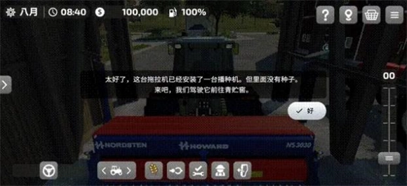3、游戏里部分农用车辆由两个部件构成,需将二者连接才能实现相应功能。玩家驾驶车身靠近配件位置后会自动完成连接,无需手动点击按钮;而要让车辆开始工作,则需点击下方的扳手按钮。