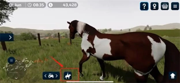 5、玩家购买马匹后,靠近马匹时界面下方会出现骑乘图标,点击该图标即可骑马。每匹马都有年龄,22个月以下的为幼年马,骑乘幼年马能训练其体能,有助于卖出更高价格。