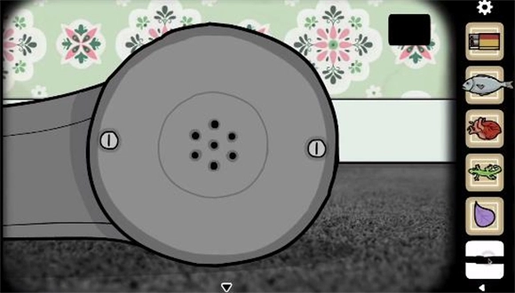 3、在电话这个地方,多次点击电话可以让它掉落。等听筒掉到地上后,点击听筒进行放大,接着用小刀拧下上面的两个螺丝,打开听筒内部完成接线操作。之后点击发光的位置两次,就能获得花瓣了。