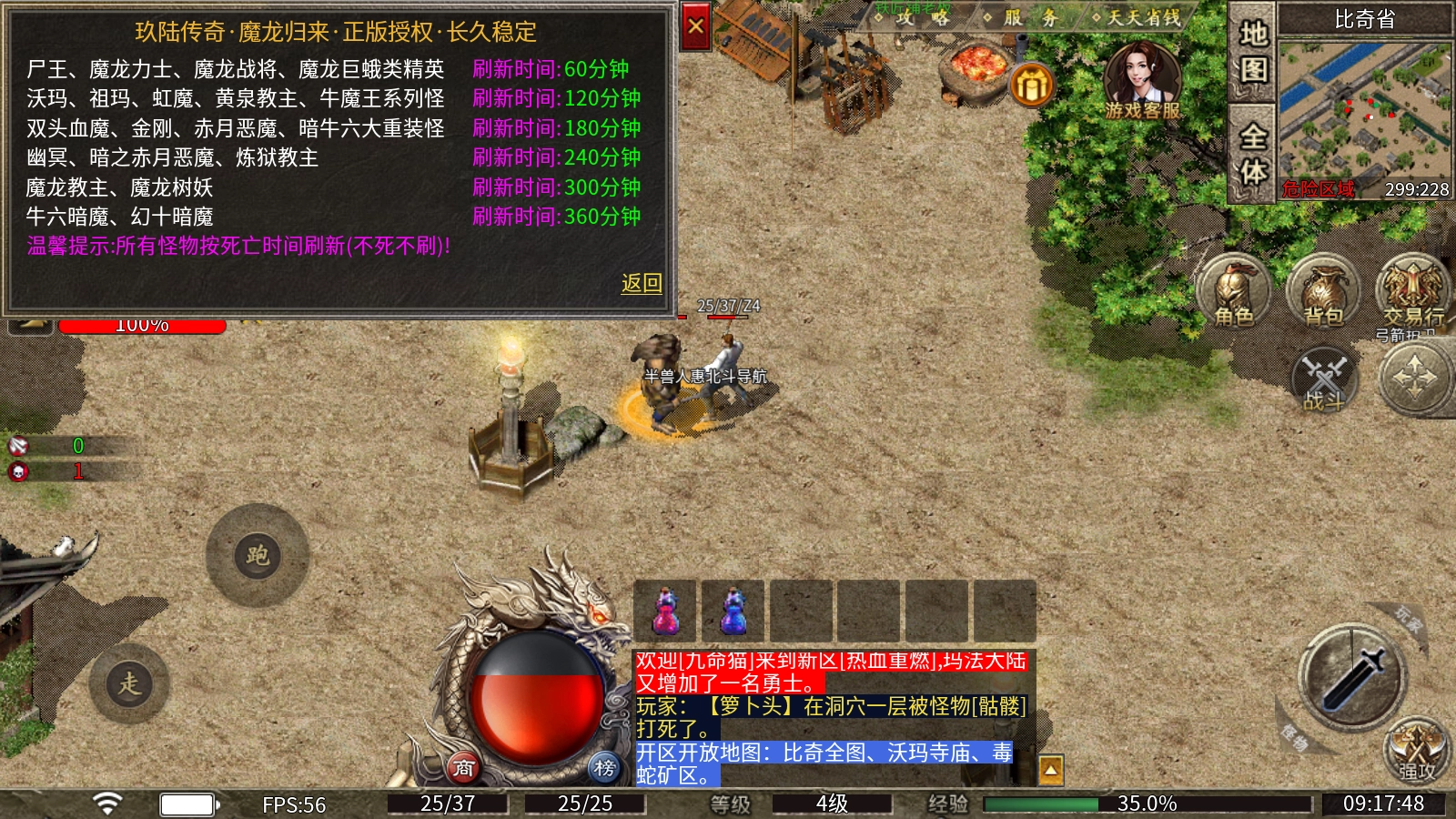 2、沃玛、祖玛、虹魔、黄泉教主以及牛魔王系列怪物,刷新间隔为120分钟