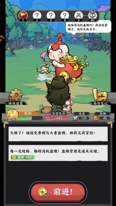 1、进入游戏后,消耗盘缠开始冒险