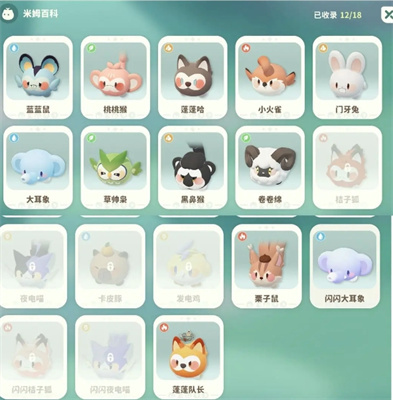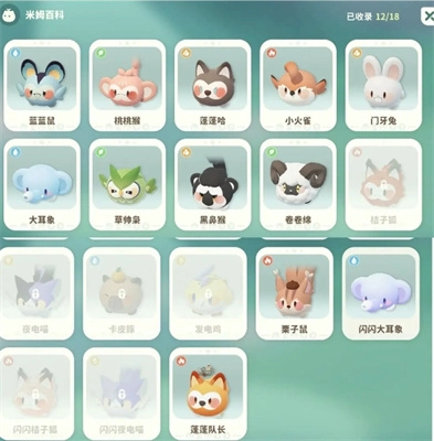 1、目前内测米姆有18种: