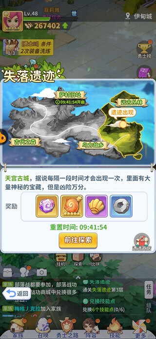 3、玩家能够在场景里进行探索,触发随机事件、找寻回复泉水、复活祭坛,还可以挑战怪物等。