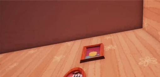 5、沿着梯子进入室内,用任意一件物品击中墙上位置最高的画,打开旁边的白色门。