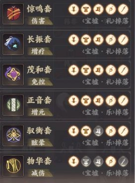 宝墟·乐副本中,神鸟这一敌人擅长召唤小怪,因此推荐搭配群体攻击类型的名士上阵应对。该副本会掉落物华套、正音套和驭衡套这三种套装。