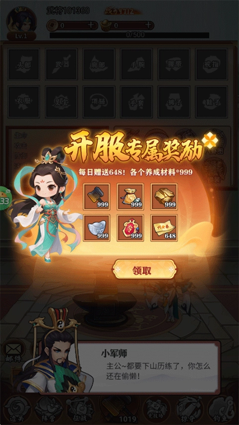 3、初次登录游戏时,能够免费获取开服专属的奖励,像银锭、铜币、令牌这类物品都包含在内。