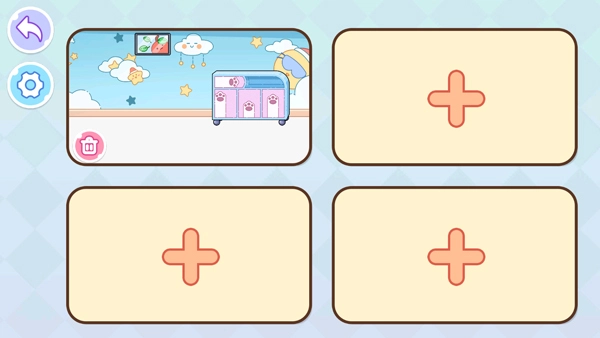 4、运用你的奇思妙想与创造才能,为每一个娃娃打造专属的小天地!从墙纸、地板的选择,到家具、装饰的布置,都由你亲手设计完成!