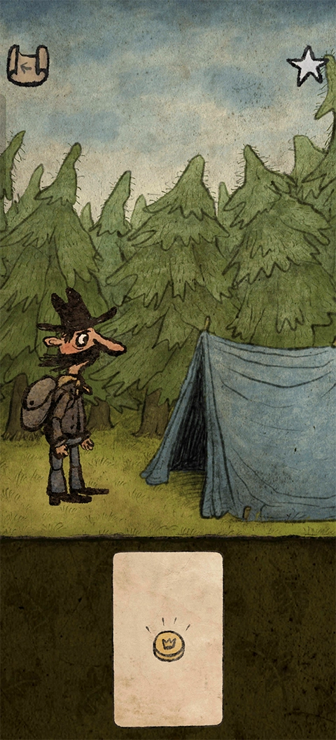 2、进入游戏完成剧情后,我们会得到一张卡牌,此时点击这张卡牌并搜索营地,就能获取一枚金币。
