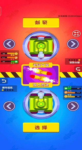 2、以双人对决为例,双方选择自己的坦克进行作战;