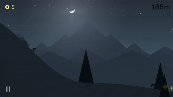 游戏中有多种根据实际滑雪情况设计的地形道路,以及不同的天气效果。玩家在游戏中前进,可以解锁多达180个成就。游戏画面精致精致,剪影风格也非常独特,在游戏画面上非常吸引人。