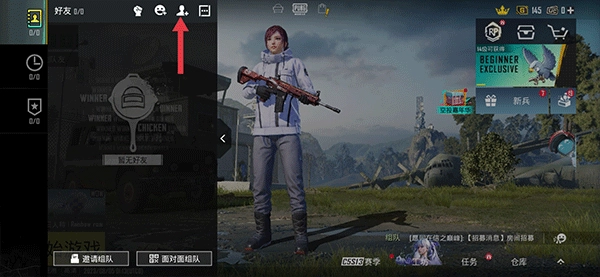 1、在pubg界面中点击右上角个人头像下方的+号
