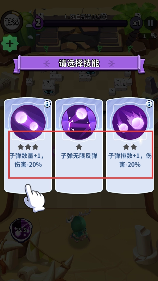 3、选择技能,如【子弹数量+1】等,提升角色的攻击能力。