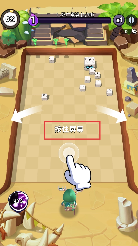 2、按住屏幕,进行游戏内的操作,开始攻击方块。