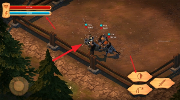1、来到游戏关中,左下角的摇杆控制角色移动,然后点击剑图标,就能发动攻击。