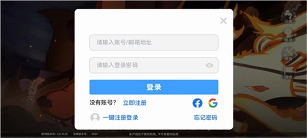 1、进入到游戏之后你可以通过谷歌账号或是脸书账号来进行登录,不用麻烦填写那么多的东西;