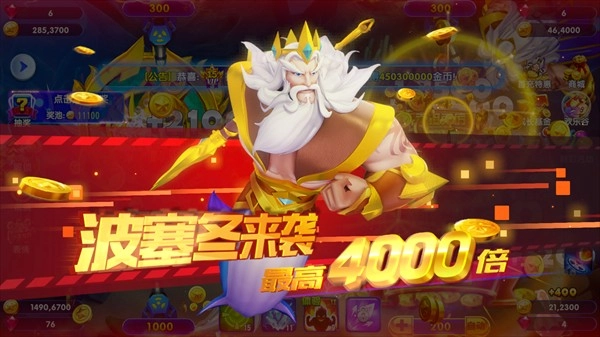 独立定制的高倍炮台,让捕鱼变得轻松简单,全屏爆金的特效,一炮就能清空整个渔场。