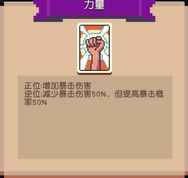 推荐优先选择能提升对boss伤害、增加暴击率、提高暴击伤害这类输出向的塔罗牌。要注意,塔罗牌默认获得后是正位效果,若有需要可以暂停游戏,点击对应塔罗牌切换成逆位状态。比如刚开始玩的时候,自身暴击率可能比较低,这时候就可以把“力量”牌调整为逆位来适配。另外,“审判”这张牌的保命效果非常出色。