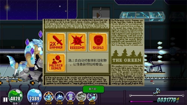 行进途中会自动获取随机出现的增益道具,使怪物在短时间内得到能力提升。