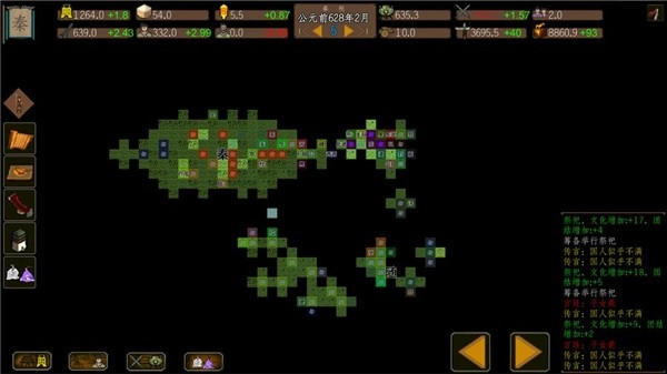 在王都所在的核心城邦,首先要着力推动生产发展:第一步是治理水患,消除洪涝对民生的威胁;接着要促进商贸流通,激活市场活力;随后优化土地资源配置,提升农业产出效率。当这些基础建设和资源开发达到满额状态时,城邦就能实现每月稳定的钱粮收益。届时,可将开采所得的各类矿产资源在市集交易,以此获取丰厚的财富积累。