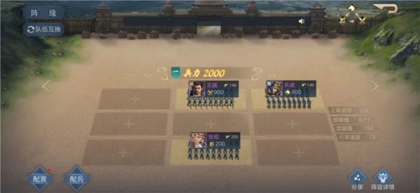 初期开荒不必看轻那三位新入手的武将——王越、乐进与张燕,他们的组合足以应对低等级地块的攻占。等主公招募到张昭或诸葛瑾后,就可以用他们替换下张燕或乐进,这种包含枪兵、骑兵与弓兵的搭配,在前期战斗中会相当实用。