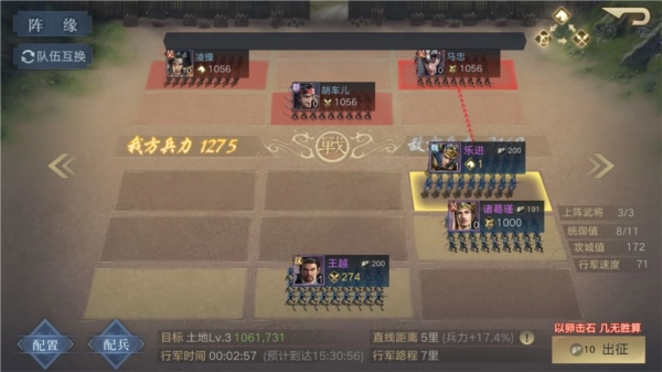 群雄逐鹿的时代已然开启,一切都要从最基础的土地征伐做起。首先得稳固根基,让麾下上阵的三位将领都提升到一定等级,再把兵力补充完整,同时强化他们的技能,这样才有底气去挑战更高级的领地。等将领们的实力进一步增强后,就可以着手准备向更难攻克的土地发起进攻了。