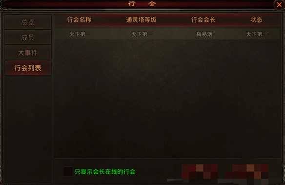 若想知晓其他行会的相关情况,可点击页面底部的“行会列表”选项,该区域会呈现当前服务器内的全部行会信息。
