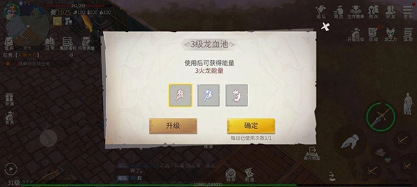 我们每日有一次机会借助龙血池的力量,获取能强化自身龙之力的火龙能量;若你拥有多头龙,还能自主挑选想要获得的龙之力类别。