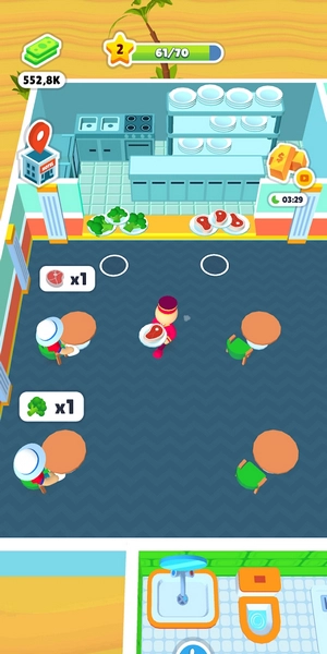 下方的区域能够自由滑动,用来控制角色的移动,现在就开始接待第一位客人吧。